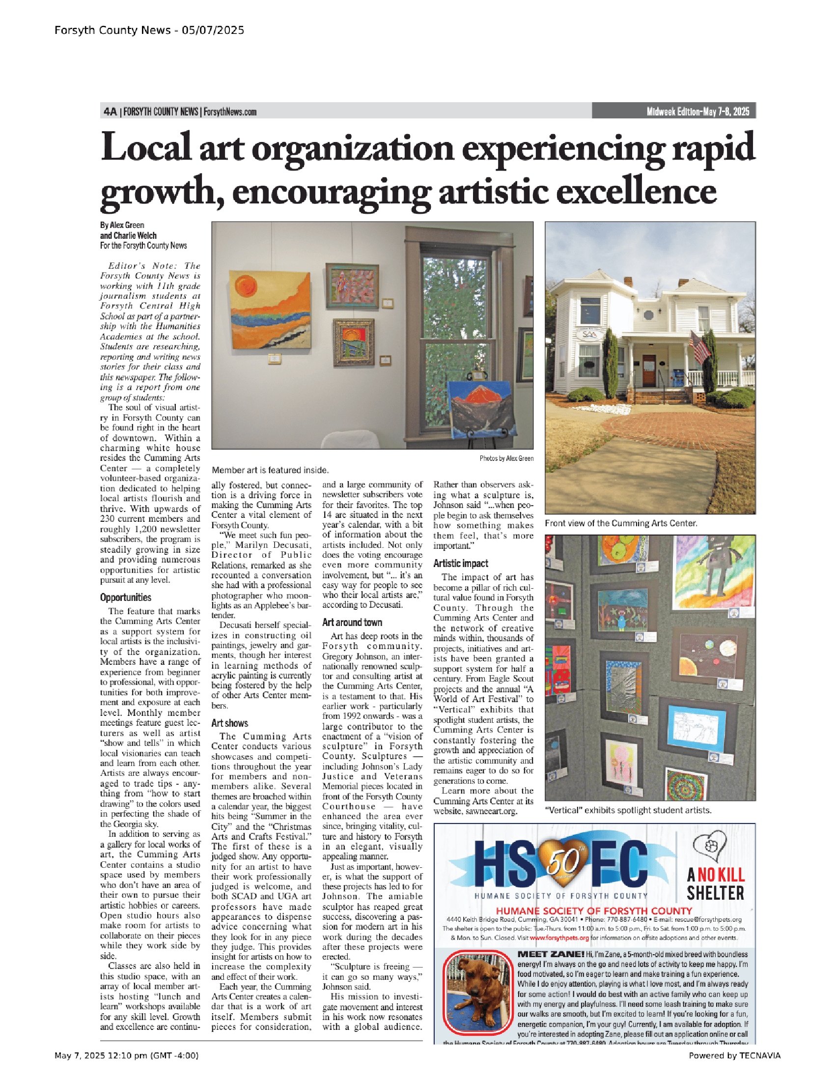 In 1970, a group of art enthusiasts saw a need for an art association to support the arts in Forsyth County. Prompted by an announcement placed in the Forsyth County News to “anyone interested in joining an art association,” approximately 30 local residents met in the town of Cumming’s only high school, Forsyth Central, to discuss taking this idea to the next level. Thus began the organization known at that time as The Sawnee Association of the Arts. This name was later changed to the Sawnee Artists Association.
